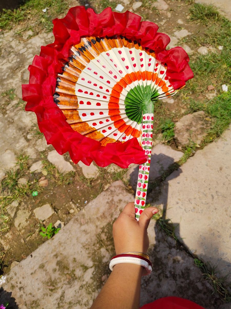 Tal Patar Haat Pakha has a peak demand during this festival. Ceremonial Tal Patar Haat Pakhas hand made by specific craftsmen are used to worship Maa Durga during the prayer. Priests Fan the Idol of Maa Durga to comfort her during the puja. Also, these Haat Pakhas bring joy & harmony to children's faces with their colorful appearance & unique features. In almost all of the Bengali festivals like Maa Kaali Puja, Dolyatra, the Haat Pakha plays an important role as a tool, decorative piece, and traditional element as well as a medium for the economic growth of the region.