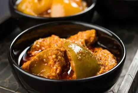 Aam Tel, a popular Bengali dish, is a famous mango pickle made from fresh mango. The pickle is a sun-dried raw mango soaked in oil, giving a great taste when consumed with Khichdi or Panta Bhat. For Bengalis, the pickle’s oil goes great and is a vital ingredient with Jhaal Muri.